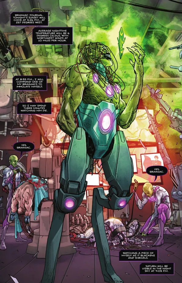 Credo che a livello sentimentale sia stato molto significativo per l’artista l’episodio dedicato all’arrivo su Smallville e all’incontro tra Kal-El e la famiglia Kent (Absolute Superman #6), ma personalmente ho trovato maestoso il suo lavoro sull’episodio dedicato a Brainiac (Absolute Superman #7), uno dei migliori della serie al momento.
