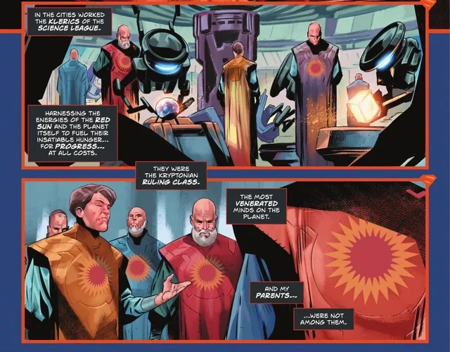 La Kripton che ci viene presentata attraverso alcuni flashback è un pianeta florido e tecnologicamente all’avanguardia, basato su un sistema di classi ben definito, dove ai vertici c’è la Lega della Scienza, il cui simbolo è un sole risplendente, mentre in basso ci sono le classi operaie, etichettate con una ‘S‘ familiare sul petto, di cui fa parte la famiglia El.