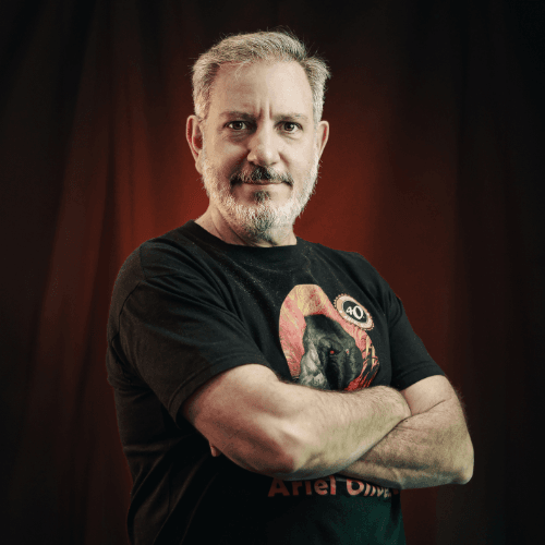 Ariel Olivetti è uno dei più rinomati disegnatori argentini nel panorama internazionale del fumetto. Laureato in Disegno Grafico all’Università di Buenos Aires, ha iniziato la sua carriera sulla leggendaria rivista Fierro, per poi co-creare l’iconico personaggio El Cazador de Aventuras, un cult del fumetto adulto argentino.