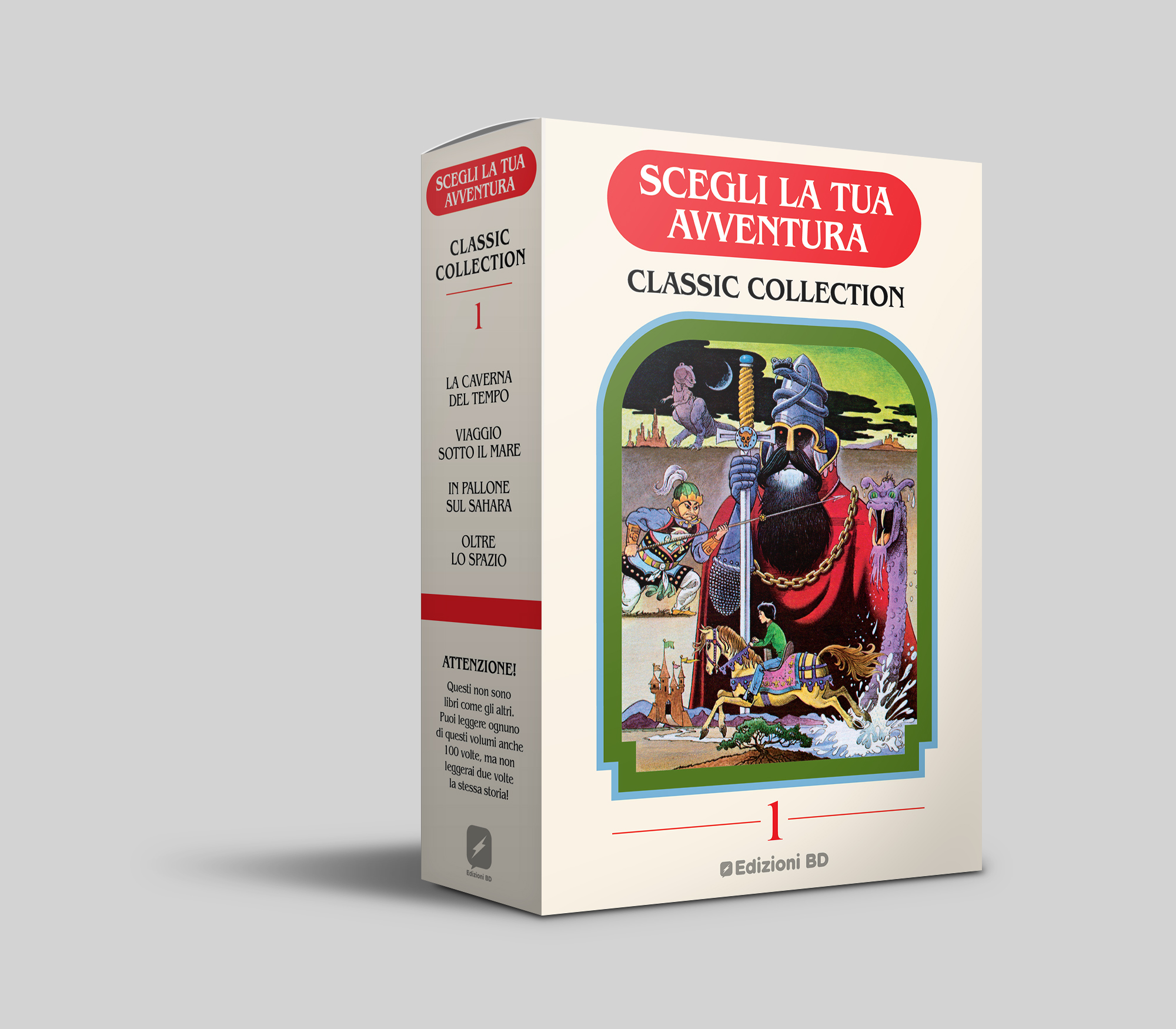 Edizioni BD riporta sugli scaffali, in una edizione rivista e aggiornata, i primi quattro volumi di Scegli la tua avventura, la leggendaria collana che ha inaugurato il fenomeno del librogame! La caverna del tempo di E. Packard, Viaggio sotto il mare e Oltre lo spazio di R. A. Montgomery, In pallone sul Sahara di D. Terman: quattro classici della narrativa a bivi che saranno disponibili a partire dalla seconda settimana di dicembre all’interno di un pregiato cofanetto da collezione. In esclusiva per l’edizione italiana, sarà inoltre disponibile l’edizione variant del box firmata dall’artista da oltre 400K di follower su IG SimzArt.