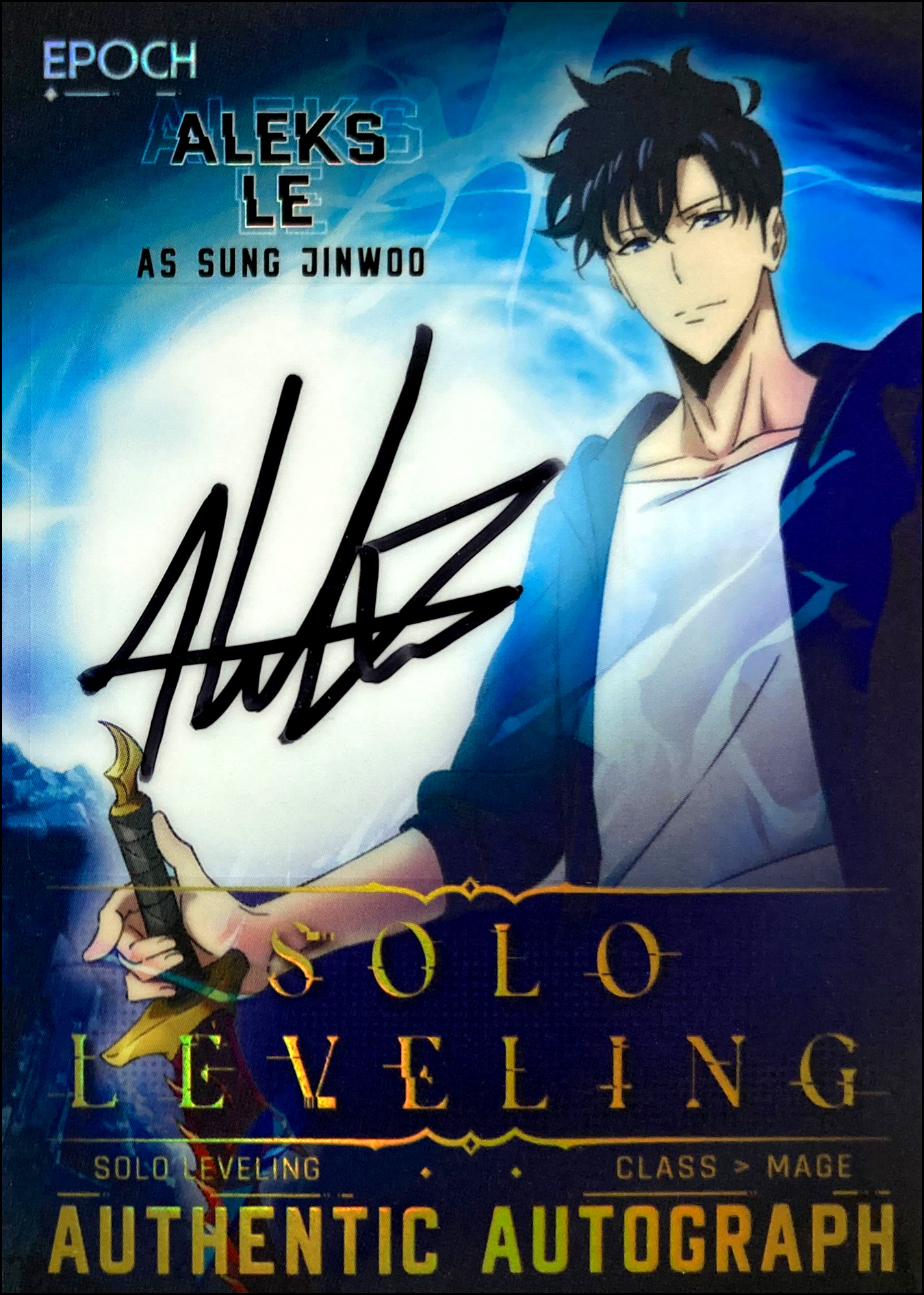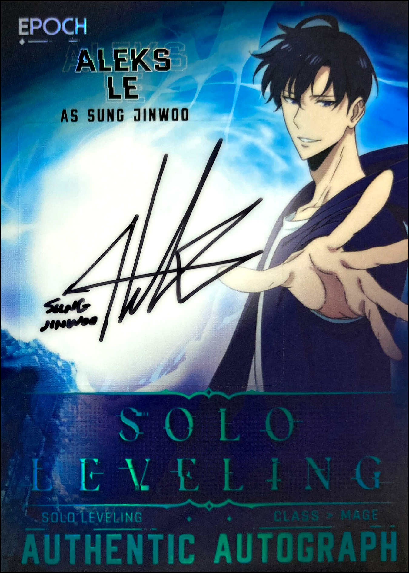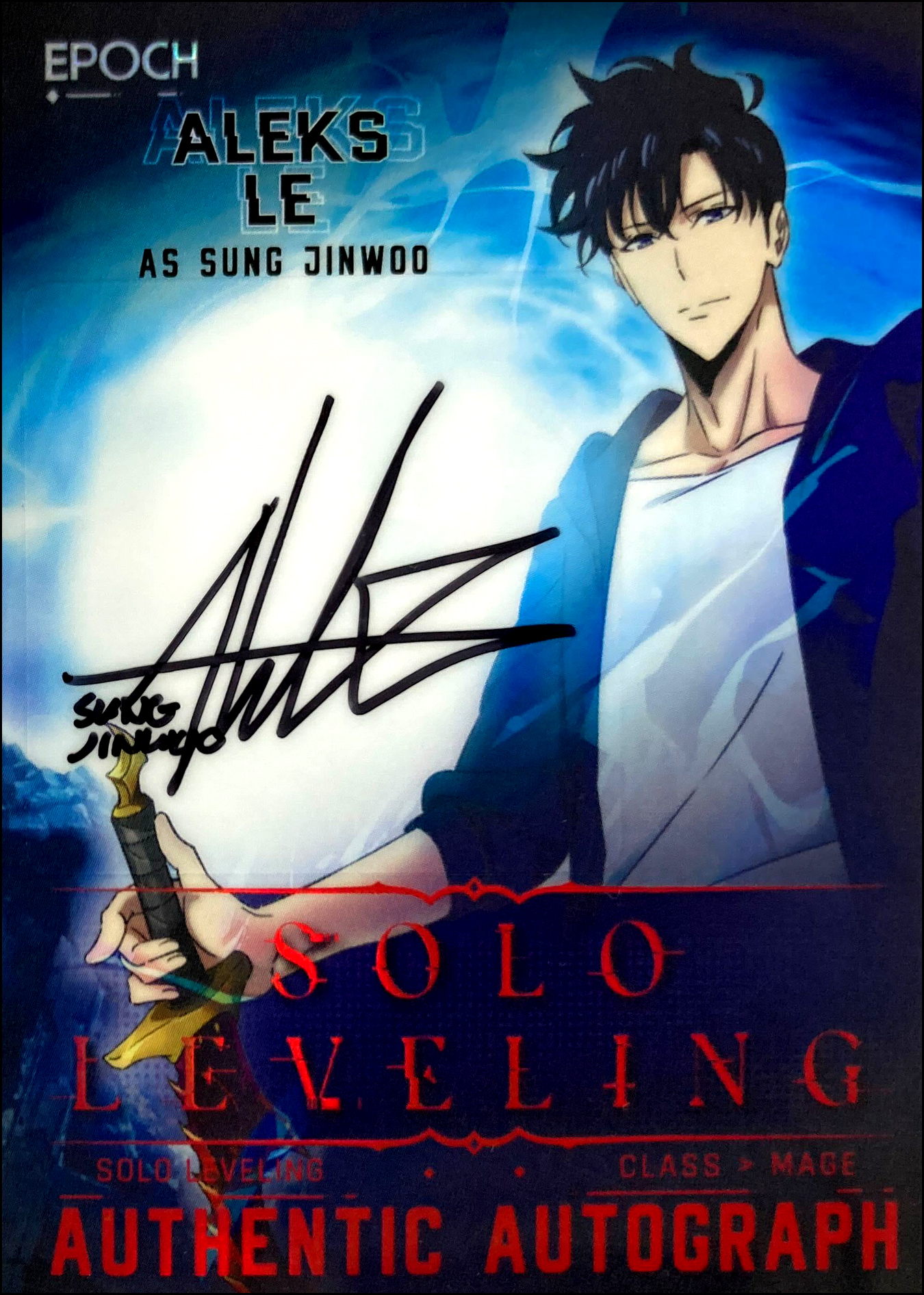 Solo Leveling – anime rivelazione diventato un successo globale – arriva nella versione card set in un prezioso formato in inglese perfetto per essere collezionato. Oltre a un set completo di 16 carte base, in ogni box è possibile trovare 1 card speciale numerata, che può essere una una carta autografata dai doppiatori inglesi della serie o una carta parallela base.