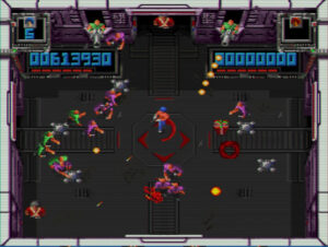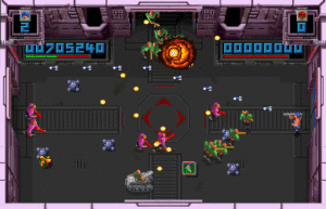 Se c’è una cosa che Smash T.V. non conosce, è la moderazione. Ogni stanza trabocca di nemici come un formicaio impazzito, un’orda che sembra non rispondere a logiche di spawn ma a un istinto primordiale di sterminio reciproco. Droni, mutanti, soldati in tuta, cyborg, carne da pixel in tutte le varianti cromatiche: il gioco ti sommerge senza pietà, come se ogni frame fosse progettato per farti gridare “basta!” — e poi, ovviamente, spingerti a inserire un altro gettone.
