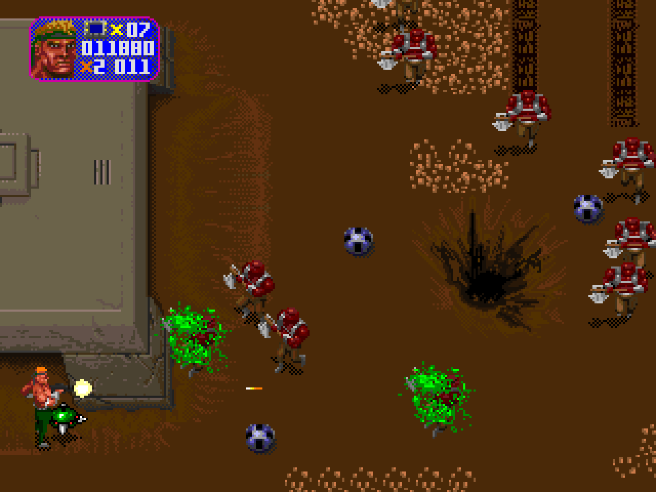 La mia versione era quella per Super Nintendo, una conversione sorprendentemente fedele, nonostante l’assenza della doppia levetta tipica del cabinato. Nintendo, con la sua solita furbizia ergonomica, aveva risolto il problema mappando la direzione di fuoco sui tasti frontali: un sistema che sulla carta sembrava un incubo, ma che in realtà — dopo qualche minuto di delirio coordinativo — diventava naturale come respirare. O meglio: come sparare in otto direzioni mentre ti scagliavano contro un esercito di psicopatici digitali.