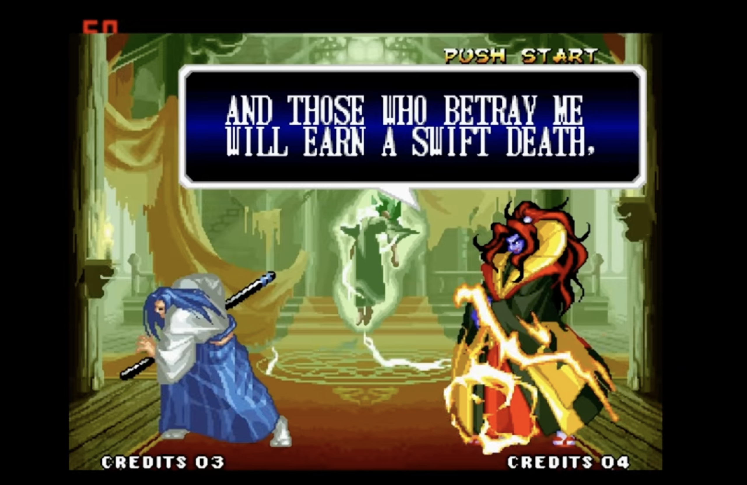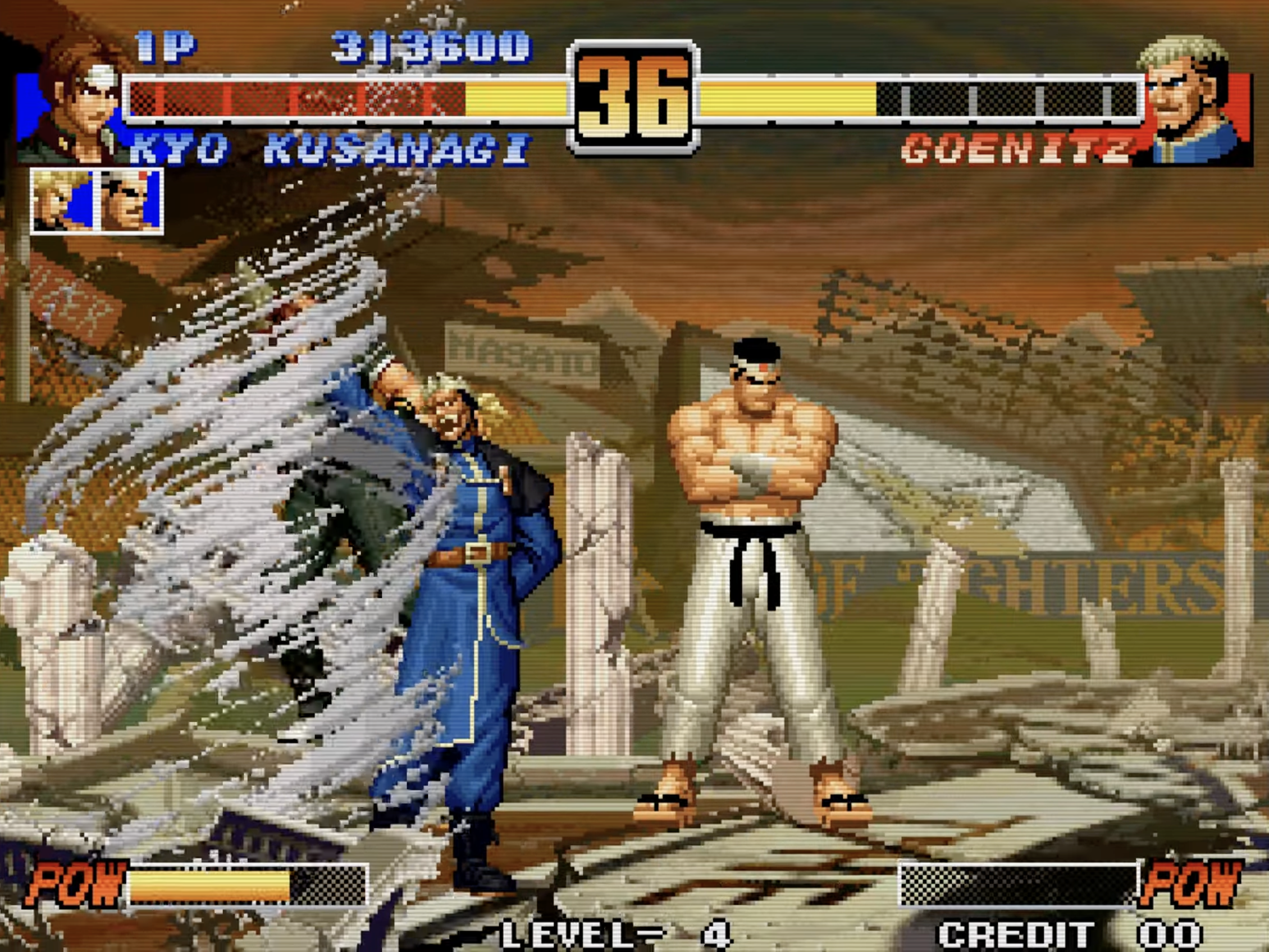 Nonostante dal capitolo successivo in poi i boss SNK abbiano preso una vertiginosa impennata verso il semi-divino il mio preferito resta lui. Villain tra l’altro di uno dei KOF migliori e più importanti di sempre. Goenitz si presentava come un potente dai modi aristocratici dotato di poteri eccezionali ed il suo stile di combattimento rifletteva magistralmente la sua personalità. La nonchalance con cui alzava un dito per evocare un tornado, i suoi colpi acrobatici eseguiti quasi senza scomporsi e la sua presa letale condita dalla sua risata da villain coi fiocchi. Uno scontro duro ma mai eccessivamente scorretto, che ci troveremo a rimpiangere negli anni a venire dopo aver provato sulla nostra pelle gli sgravissimi Igniz e Magaki.