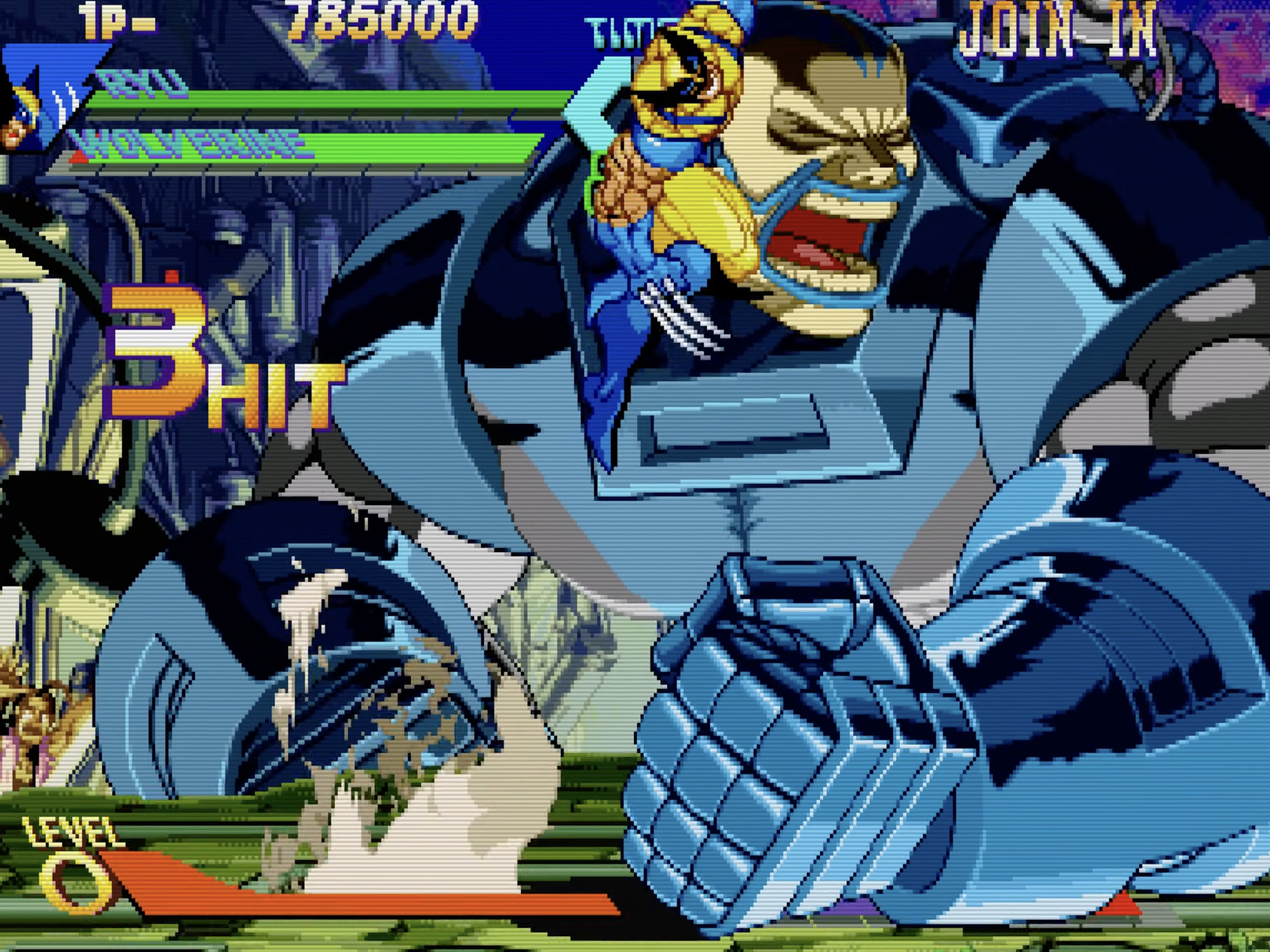Vedere combattere Ryu e Chun Li a fianco di Cyclops e Wolverine era davvero qualcosa che lasciava a bocca aperta. E a coronare tutto questo Capcom ci spettinava con un boss finale che ridefiniva totalmente il concetto di “esagerato”. Guardatelo, non si era mai visto niente del genere. Un boss talmente grande da non riuscire neanche a stare nello schermo e che, proprio per questo, bisogna affrontare con un approccio radicalmente differente. Abbandonata qualsiasi cautela strategica ci lanciavamo contro questo titano metallico riversandogli addosso quanti più colpi possibili nello scontro più forsennato e caotico mai provato fino a quel momento.