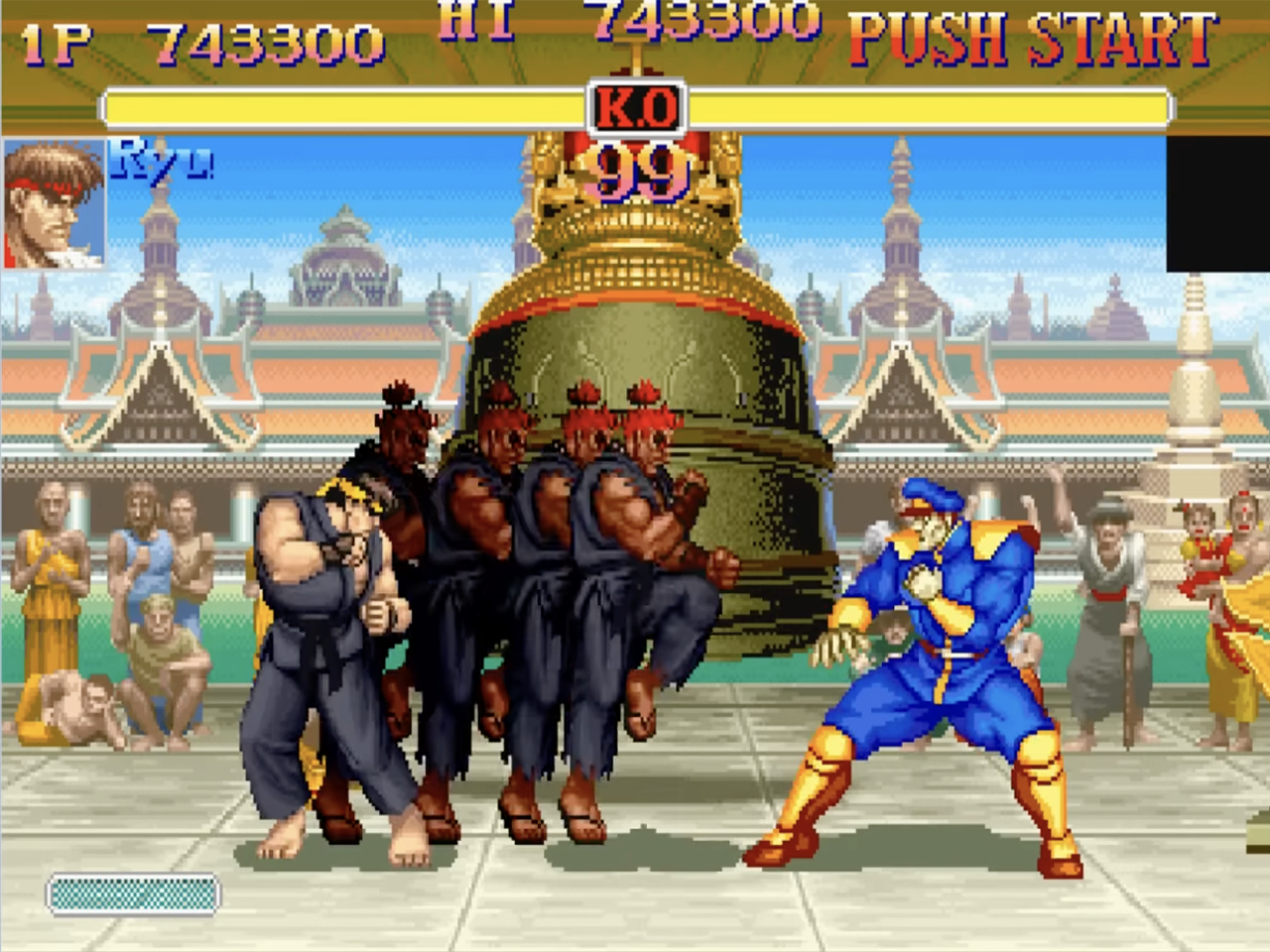 La seconda sono le code chilometriche davanti ai cabinati per battere M. Bison. Capcom aveva preparato due colpi di scena: dopo aver vinto i primi 7 scontri (diventati poi 8 nella champion edition grazie all’introduzione del mirror match) ecco apparire sulla mappa 3 nuovi avversari misteriosi, non selezionabili dal giocatore: un pugile incazzatissimo con la faccia di Mike Tyson, una specie di ninja spagnolo armato di artiglio ed un campione di muay thai tailandese dal nome familiare.