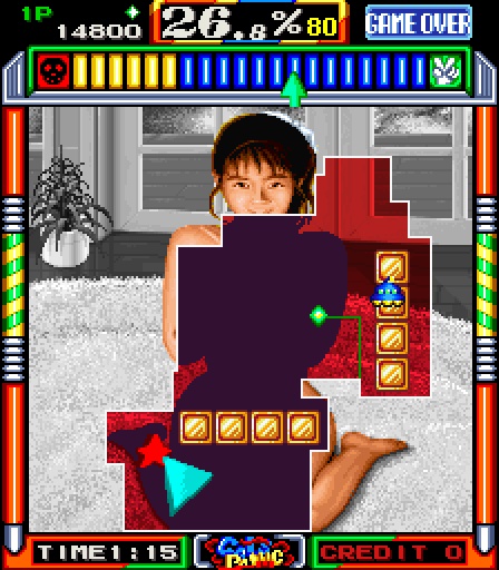 L’obiettivo era sempre la stesso ma questa volta lo sfondo da scoprire era un disegno (un castello, un paesaggio e così via) cercando di sfuggire dagli attacchi di mostri e mostriciattoli che impazzavano per lo schermo. Super Quix ebbe un buon riscontro, una buona diffusione nelle sale giochi nostrane ma il motivo per cui resta importante è l’aver gettato le basi per Kaneko per creare quello che sarebbe diventato, tre anni più tardi, il suo successo planetario. Stiamo ovviamente parlando di Gals Panic.