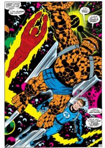 Jack Kirby, con il suo design cosmico e la potenza grafica delle tavole Silver Age, è la musa principale. Il co-creatore di Reed Richards, Ben Grimm, Susan e Johnny Storm non ha solo realizzato il design dei quattro eroi dei fumetti e di tutto il cast, ma ha modellato un vero e proprio mondo divenuto col tempo leggenda.