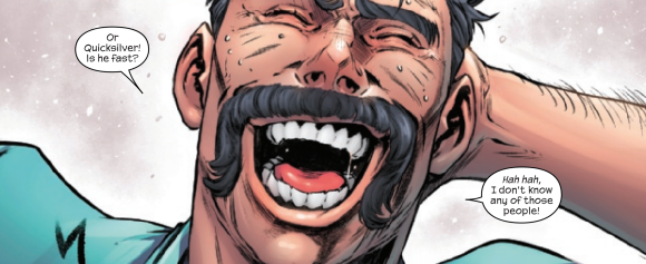 PCN – Di recente ho letto una storia dei Fantastici Quattro di Mark Waid e Mike Wieringo [Fantastic Four #511 ristampato su Marvel Masterseries – Fantastici Quattro di Mark Waid e Mike Wieringo #2 n.d.r.] in cui i personaggi incontrano Jack Kirby, e nel disegno che Kirby fa come regalo al quartetto, Johnny Storm ha i baffi.