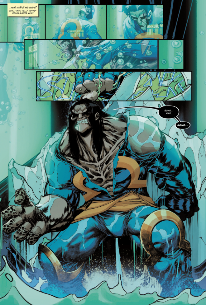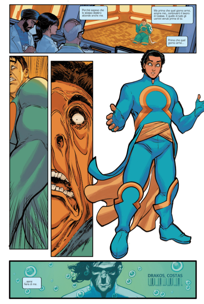 Anyman è l’eroe arrivato dal passato per proteggere l’umanità: è ciò che emerge nelle primissime pagine del volume, in cui DeMatteis introduce una backstory didascalica sul protagonista, chiara e immediata.