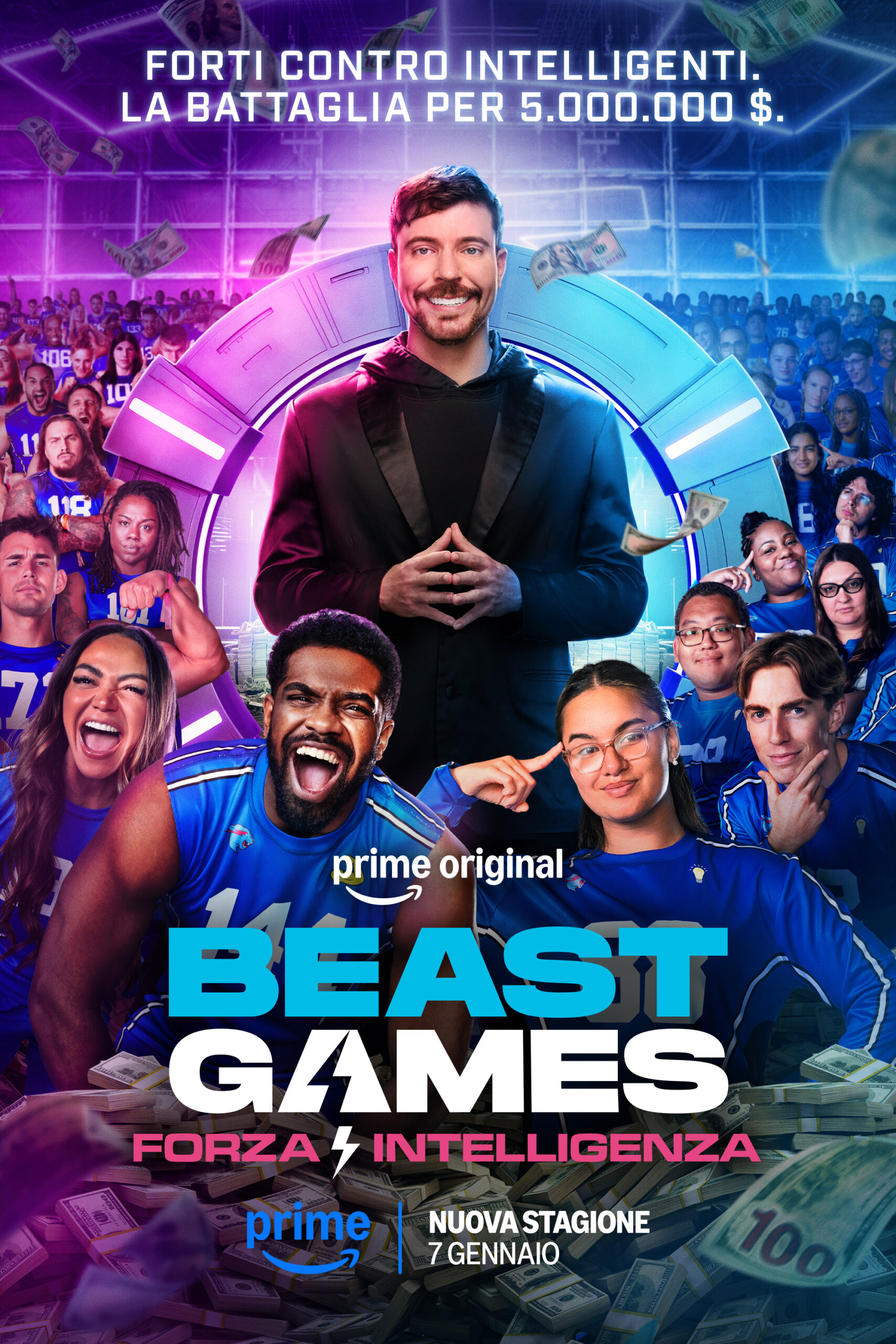 Dopo una prima stagione da record, Beast Games è tornato! Più grande, più ambizioso e più impegnativo che mai. MrBeast ha riunito 100 dei concorrenti più forti del pianeta e 100 delle menti più brillanti del mondo. I giocatori di “Forza vs. Intelligenza” si contenderanno un montepremi da capogiro di 5.000.000 di dollari e, mentre si affronteranno in uno scontro estremo tra cervello e bicipiti, si formeranno alleanze e si romperanno rapporti basati sulla fiducia. Ogni sfida spingerà al limite la forza, l’intelligenza e le strategie di ciascuno di loro. Cosa non saresti disposto a fare per 5.000.000 di dollari?