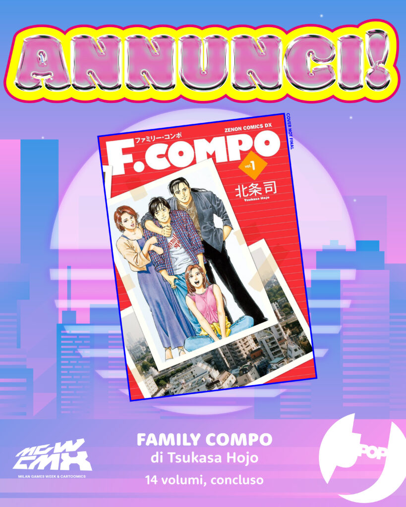 La casa editrice è inoltre entusiasta di annunciare l’ingresso nel proprio catalogo di Tsukasa Hojo, leggendario autore di Occhi di Gatto e City Hunter, con la commedia fuori dagli schemi Family Compo.