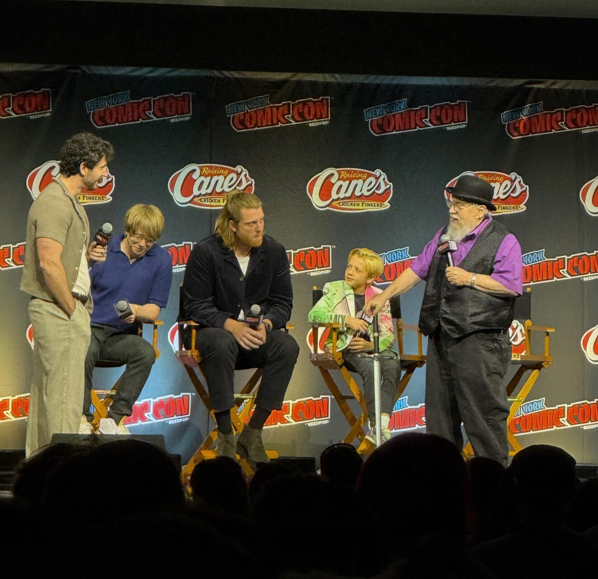 Il moderatore Brandon Davis ha trascorso circa un’ora sul palco dell’Empire Stage insieme allo showrunner della serie, Ira Parker, ai protagonisti Peter Claffey e Dexter Sol Ansell – che interpretano rispettivamente Ser Duncan the Tall (Duncan l’Alto) e Aegon V Targaryen – e all’autore della saga Game of Thrones, George R. R. Martin, parlando della serie e delle loro esperienze sul set.