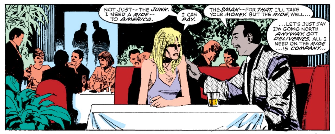 Gli anni Ottanta sono stati anche gli anni della diffusione massiccia delle droghe, soprattutto negli Stati Uniti, dove il Paese si trovò a fare i conti con un’ondata senza precedenti di sostanze stupefacenti, alimentata in larga parte dai cartelli della droga sudamericani. Per avere un riferimento immediato, sono gli anni in cui la figura di Pablo Escobar diventa centrale nell’immaginario collettivo. Il tema della tossicodipendenza viene ripreso da Frank Miller e inserito al centro della narrazione di Daredevil: Born Again, utilizzandolo come uno dei motori principali della caduta – e successiva rinascita – dei suoi personaggi.