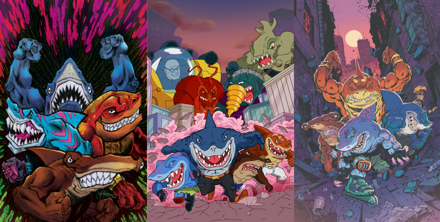 Street Sharks #1 (Spillato Speciale): Per celebrare il lancio, saranno disponibili due versioni spillate del primo numero con cover esclusive dei maestri Marco Santucci e Maria Laura Sanapo.