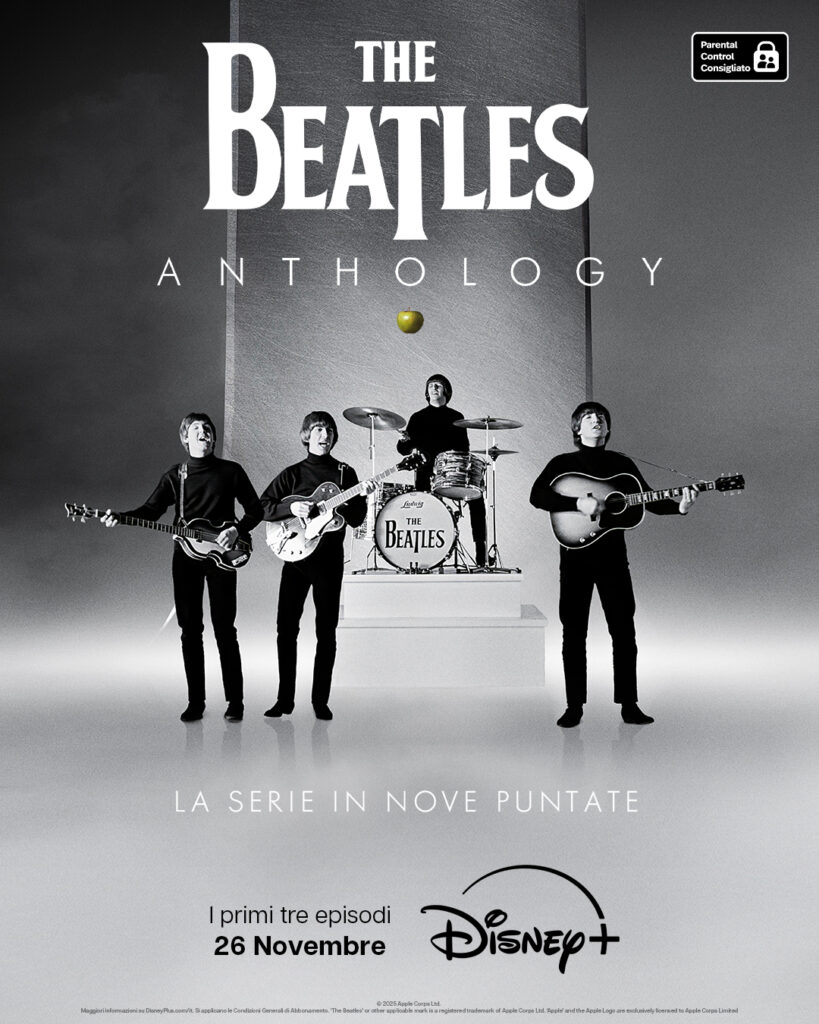 19 novembre 2025 – Disney+ ha diffuso il trailer e la key art di The Beatles Anthology, che debutterà sulla piattaforma streaming il 26 novembre, con tre episodi disponibili al lancio. I successivi appuntamenti saranno il 27 novembre con gli episodi 4-6 e il 28 novembre con gli episodi 7-9.